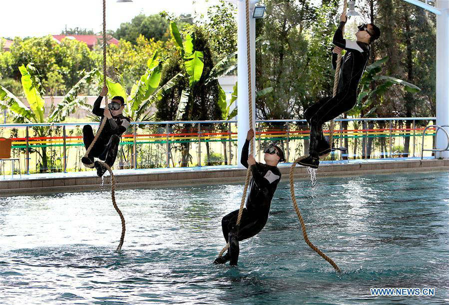 SWAT team members take part in a drill to test their ability to handle emergency situations in east China's Shanghai Municipality, July 31, 2017. (Xinhua/Fan Jun)