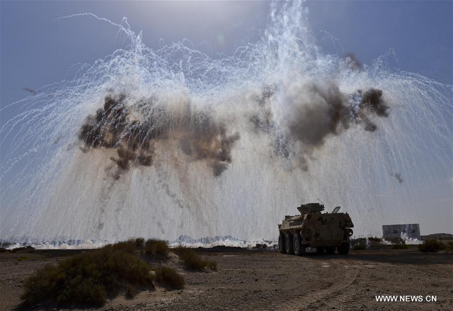 Photo taken on August 2, 2017 shows the "Safe Environment" competition in Korla of northwest China's Xinjiang Uygur Autonomous Region. "Safe Environment" competition of the International Army Games 2017 kicked off in Korla on Wednesday. Teams from China, Russia, Egypt, Iran and Belarus took part in the competition. (Xinhua/Hu Huhu)