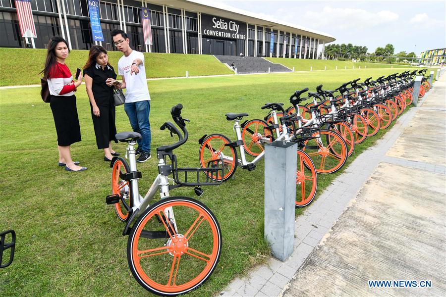 A staff member explains manipulation of a Mobike in Shah Alam of the Selangor State, Malaysia, on Spet. 6, 2017. Mobike, a major Chinese smart bike sharing brand, announced its entry into the Malaysian market on Wednesday, as more bike sharing players cast their sights on the region. (Xinhua/Chong Voon Chung)