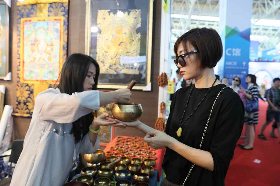 Visitors look at the exhibitions alongside the China-Arab Expo 2017 in Yinchuan, Ningxia Hui Autonomous Region. The exhibitions are themed on nine different subjects, including two comprehensive exhibitions on Eygpt, China's Fujian province, and high-tech exhibitions such as on high-speed rail, icloud and big data. (Hai Dong/People's Daily Online)