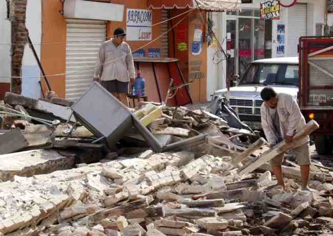 A man removes debris from a collapsed building felled by a massive earthquake, in Juchitan, Oaxaca state, Mexico on Sept. 8, 2017. [Photo: AP/Luis Alberto Cruz]