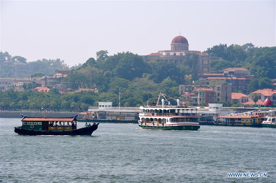 Sightseeing boats sail on the coast off Gulangyu island in Xiamen City, southeast China's Fujian Province, Oct. 2, 2017. Local authority took measures to limit the passenger flow on the small island during the National Day holiday, with no more than 50,000 visitors per day. The island in Xiamen entered the UNESCO world heritage list in July this year for its cultural history and historic buildings. (Xinhua/Jiang Kehong)