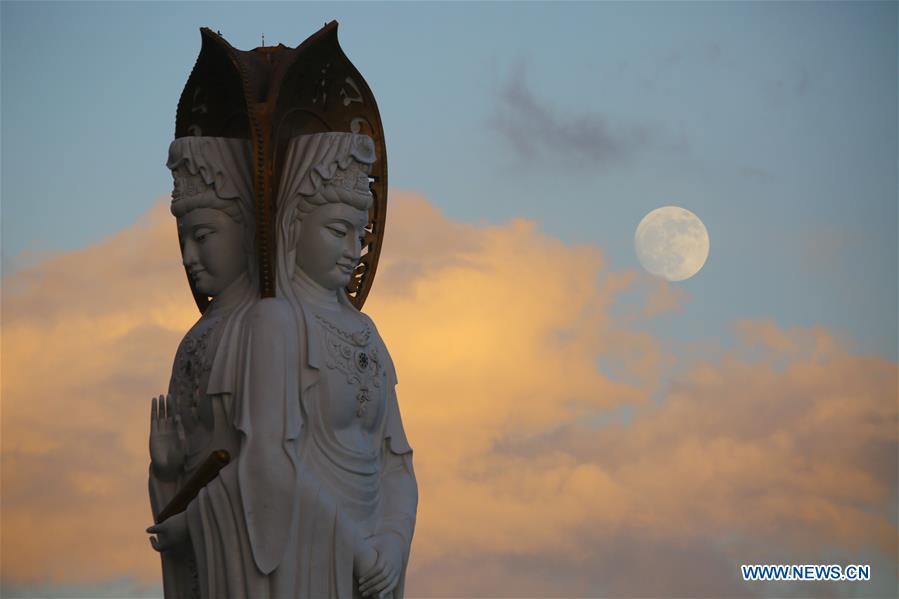 Photo taken on Oct. 4, 2017 shows the moon during the Mid-Autumn Festival in Sanya, south China's Hainan Province. The Mid-Autumn Festival, the 15th day of the eighth month on China's lunar calendar, is an occasion for family gatherings. (Xinhua/Chen Wenwu)