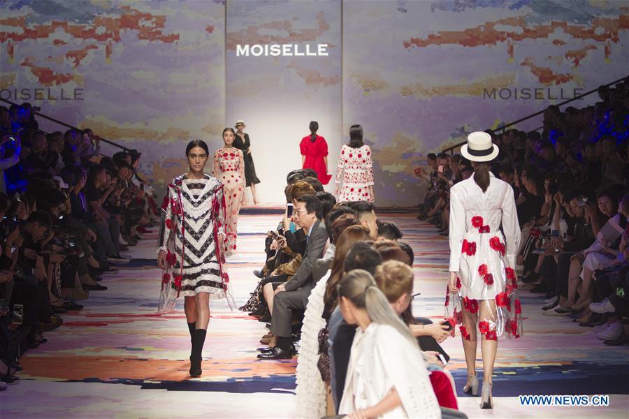 Models present creations during the Shanghai Fashion Week Spring/Summer 2018 in Shanghai, east China, Oct. 11, 2017. Shanghai Fashion Week kicked off here on Wednesday. (Xinhua/Du Xiaoyi)