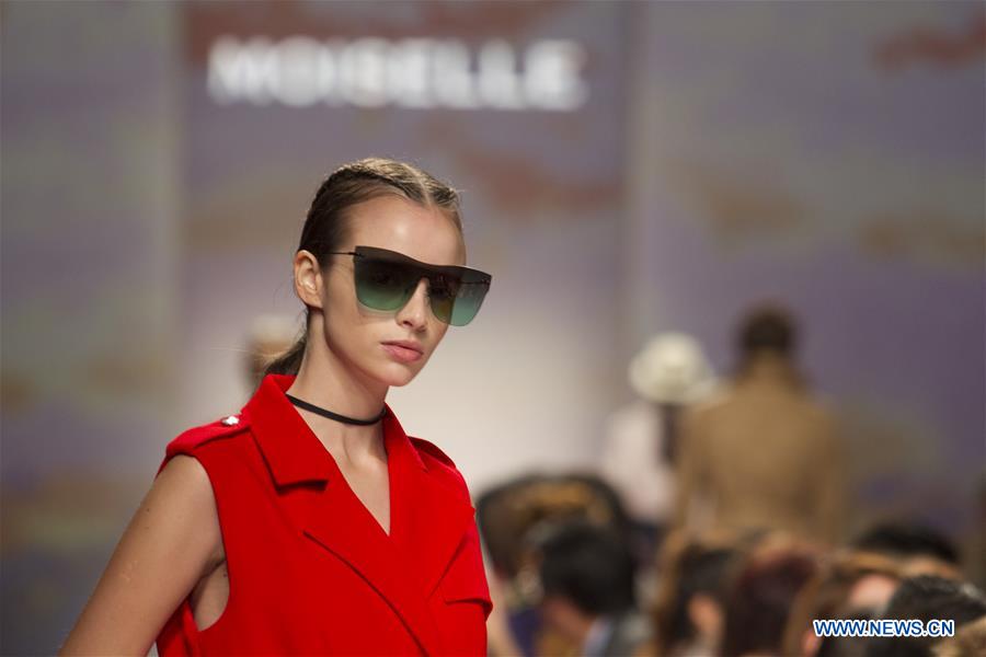 A model presents a creation during the Shanghai Fashion Week Spring/Summer 2018 in Shanghai, east China, Oct. 11, 2017. Shanghai Fashion Week kicked off here on Wednesday. (Xinhua/Du Xiaoyi)