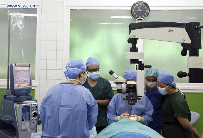 Chinese medical team members perform an eye surgery in Taunggyi, Myanmar, Oct. 19, 2017. A Chinese medical team on Thursday began a free cataract surgery program in Taunggyi, Myanmar's Shan State on Thursday. [Photo: Xinhua]