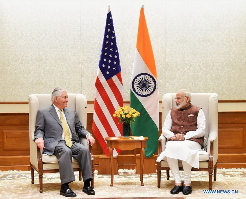 NEW DELHI, Oct. 25 (Xinhua) -- Visiting U.S. Secretary of State Rex Tillerson on Wednesday met with Indian Prime Minister Narendra Modi on bilateral relations, officials said.