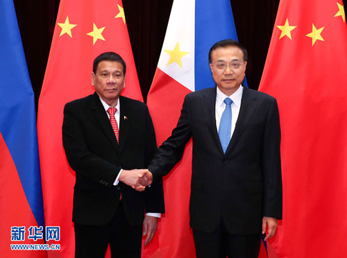 On October 20, 2016, Premier Li Keqiang met at the Great Hall of the People with President Rodrigo Duterte of the Philippines, who was on a state visit to China.