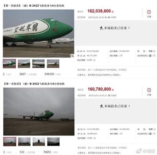 SHENZHEN, Nov. 21 (Xinhua) -- Two Boeing 747 freighters were sold Tuesday on Taobao after repeated attempts to sell them offline.