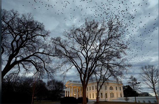 Birds fly over the White House during the second day of the US government shutdown on January 21, 2018. Photo: Reuters