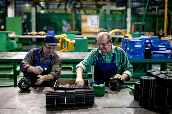 Employees work at a factory purchased by Chinese machinery equipment manufacturer Liugong Machinery Co Ltd, in Stalowa Wola, Poland. Under the Belt and Road Initiative, Liugong's factory has created more employment opportunities for people in the town. [Photo/Xinhua]