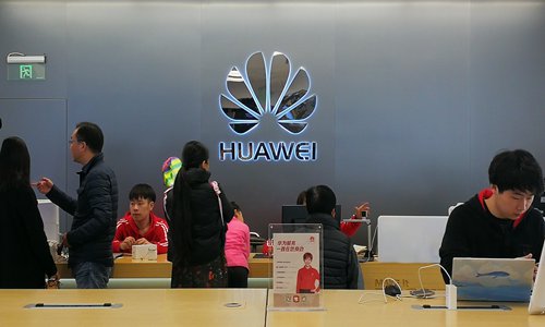 Consumers at a Huawei smartphone outlet in Nanjing, East China's Jiangsu Province, on November 19, 2017 Photo: VCG
