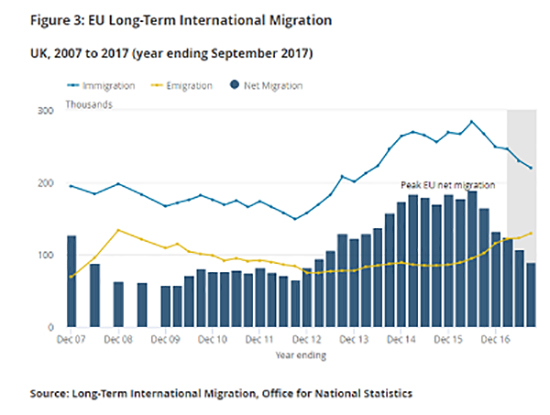 The report found that the number of EU citizens leaving the UK hit 130,000, a number that hasn’t been seen since 2007.