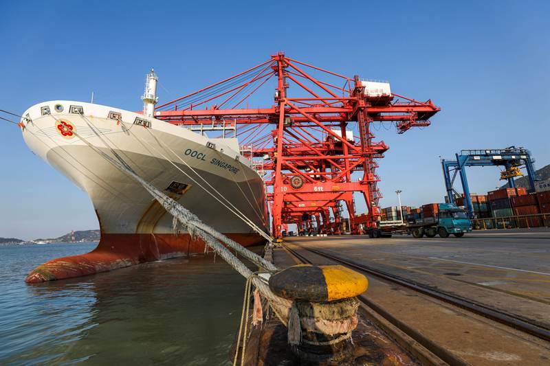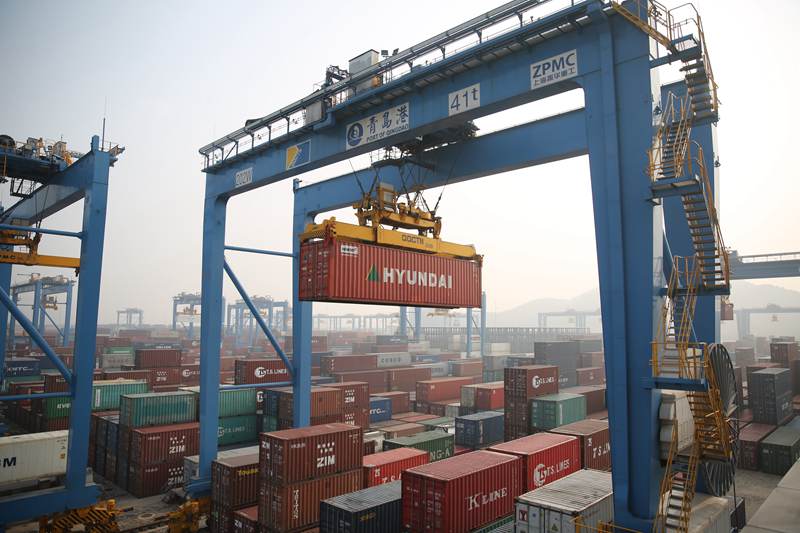 Photo taken on January 17, 2018 shows the busy automated container terminal at Port of Qingdao in east China’s Shandong province. (Photo by Zhang Jingang from People’s Daily Online)