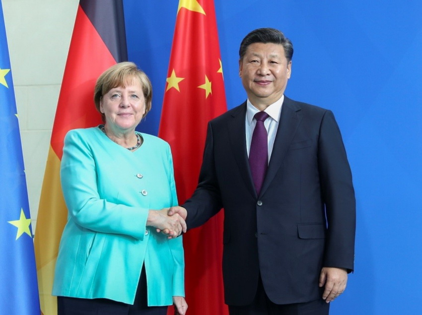 Chinese President Xi Jinping (R) holds talks with German Chancellor Angela Merkel in Berlin, capital of Germany, July 5, 2017. (Xinhua/Xie Huanchi)