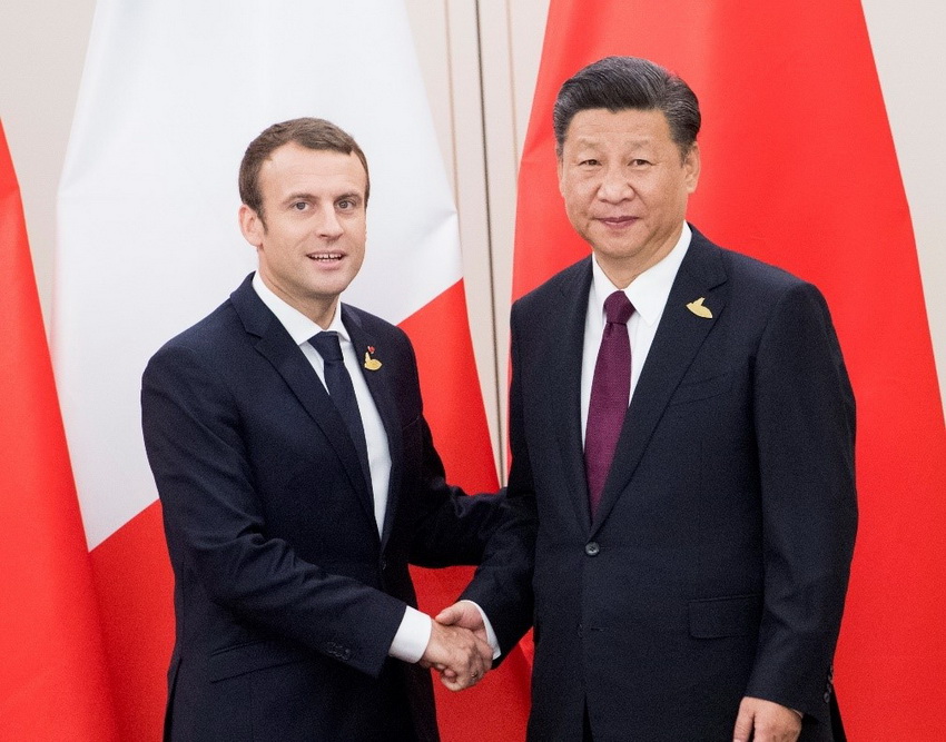 Chinese President Xi Jinping (R) meets with his French counterpart Emmanuel Macron in Hamburg, Germany, July 8, 2017. (Xinhua/Li Xueren)