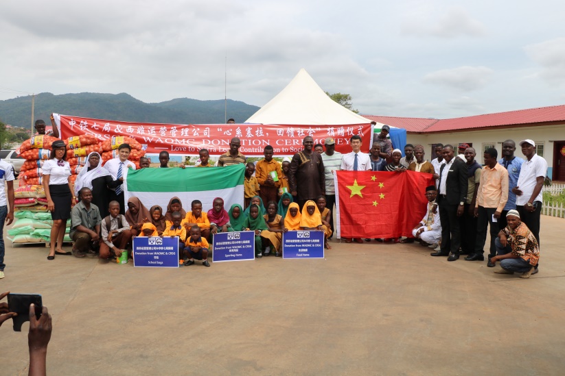 West African Operations and Management Company (WAOMC), together with Sierra Leone Region of China Railway Seventh Group’s overseas company (CRSG), continue to demonstrate their commitment to promoting economic development of Sierra Leone and the local people’s livelihood, hoping to help them live a better life. The two companies have generously donated foods and non-food items (School bags for community children, sporting items for community and bags of food items) to surrounding communities where they operate in the West African country.
