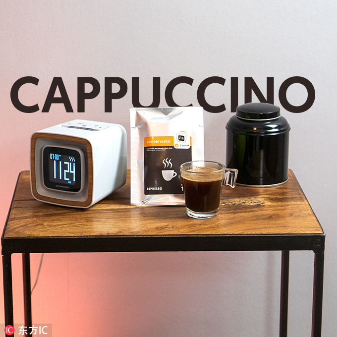 A smell wake-up alarm called SensorWake Trio is raising funds through a crowdfunding campaign until July 13. The offered smells include the cappuccino smell. [Photo/IC]