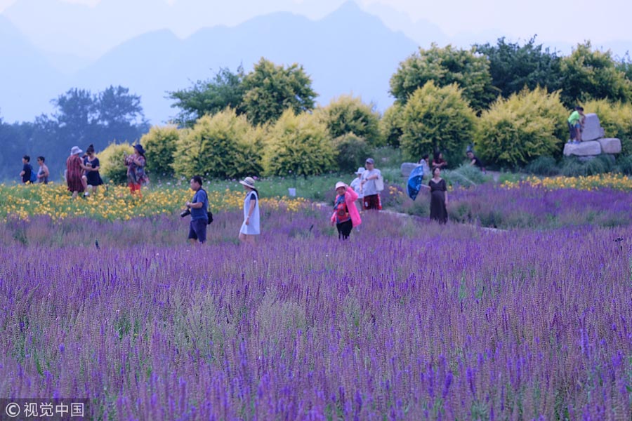 Visitors stroll in the lavender field, June 10, 2018. [Photo/VCG]