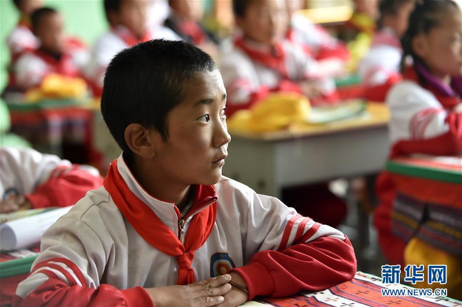A boy takes classes at a primary school in Nima County, Nagqu. He will get a better education after moving to Lhasa. Photo from Xinhua