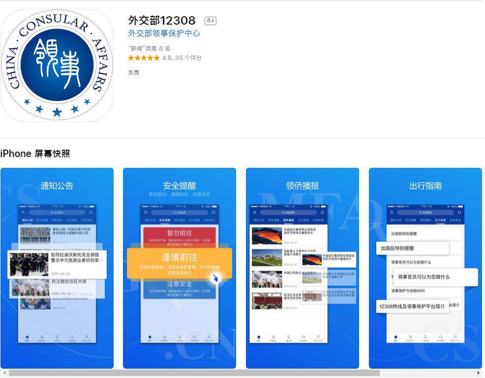 “This app, together with our Wechat official account and Weibo of 12308, will simultaneously issue overseas security reminders, handle major overseas emergencies involving Chinese nationals, introduce important Chinese and foreign visa system arrangements and important policies and information concerning the issuance of consular documents for Chinese nationals,” said Geng Shuang.