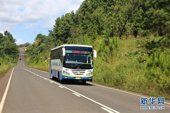 A bus is running on Fiji's Nabouwalu highway undertaken by a Chinese company.