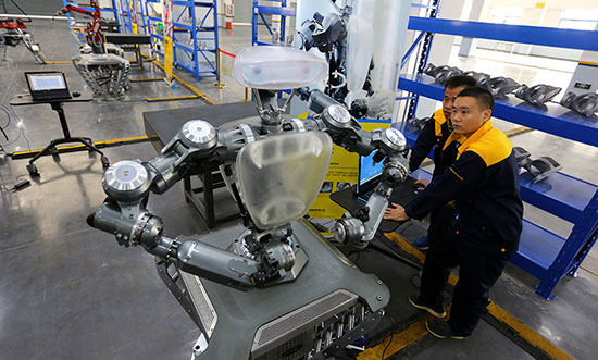 Technicians at Hsoar Group assemble a robot in Wenzhou, Zhejiang province. [Photo provided to China Daily]