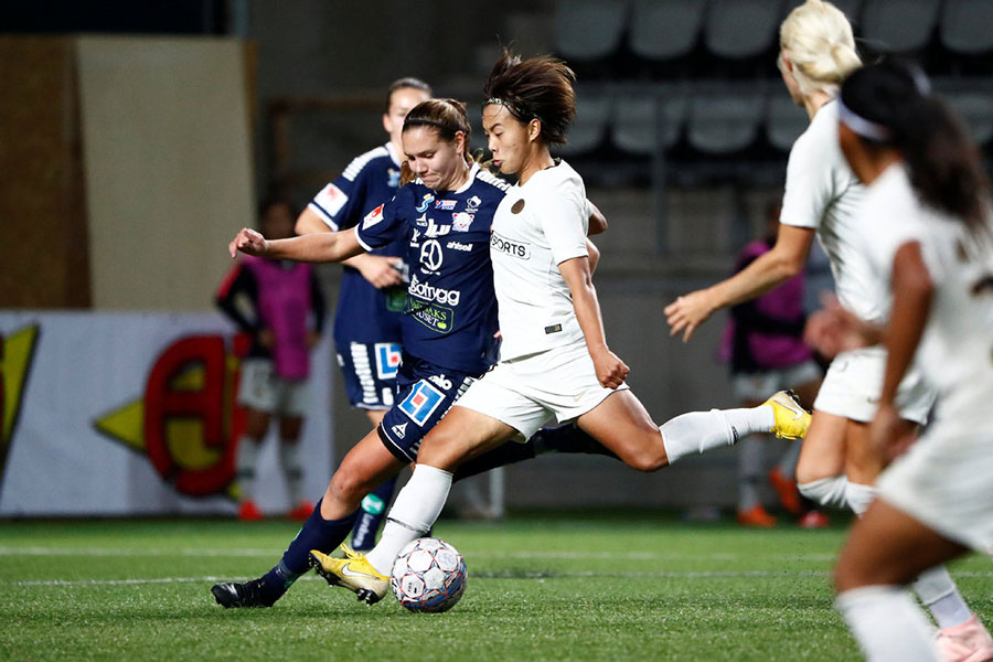 Linkopings' Emma Lennartsson and Wang Shuang of PSG in action, Linkoping Arena, Linkoping, Sweden, October 17, 2018. [Photo/Agencies]
