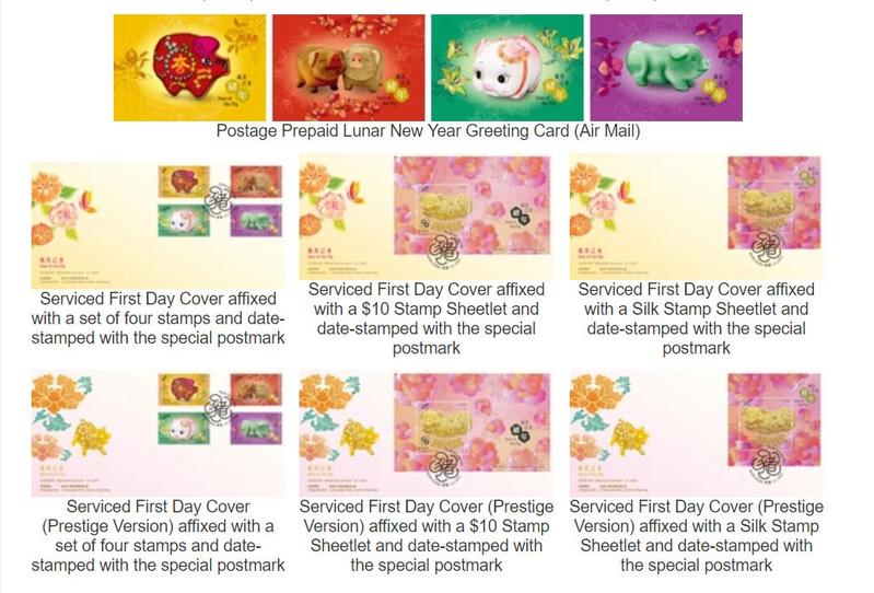 This screen shot from the official website of Hongkong Post shows some of the new special stamps themed on the Year of the Pig.
