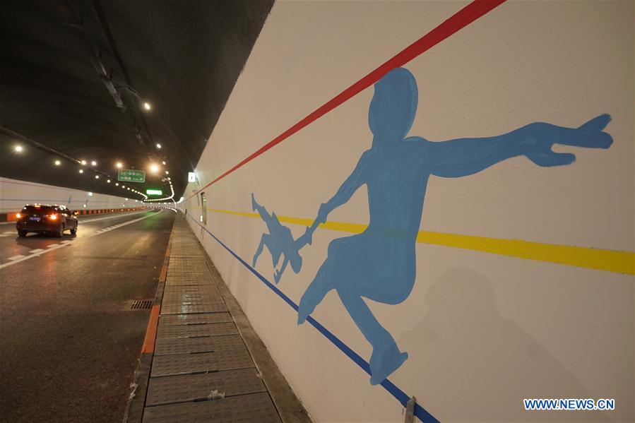 Photo taken on Jan. 1, 2019 shows Yingchengzi Tunnel of the Xinglongkou-Yanqing section of Beijing-Chongli Expressway, which gets through Beijing's Changping district and Yanqing district, in Beijing, capital of China. After more than three years' construction work, the 42.2-km-long Xinglongkou-Yanqing section of Beijing-Chongli Expressway linking northwest Beijing's Xinglongkou Village in Changping district and Yanqing district opened to traffic on Tuesday. Beijing-Chongli Expressway starts from Beijing and ends at Chongli of north China's Hebei Province. It will serve the Beijing International Horticultural Exhibition 2019 and the Beijing 2022 Winter Games, which are to be held in Yanqing and Chongli respectively. (Xinhua/Xing Guangli)