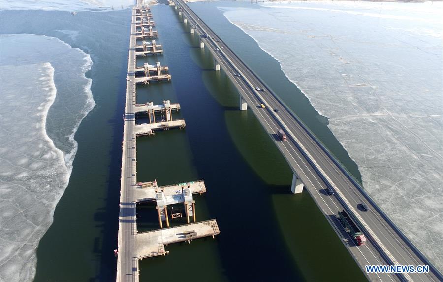Aerial photo taken on Feb. 14, 2017 shows the under-construction bridge of the Jingzhang High-speed Railway across the Guanting Reservoir in Huailai County of Zhangjiakou City, north China's Hebei Province. The 18th Central Committee of the Communist Party of China (CPC) held the third plenary session in November, 2013. In the five years since then, China's reform momentum had been particularly strong as the CPC decided to advance reform in all aspects during the meeting. Since the third plenary session, Chinese President Xi Jinping has presided over at least 45 high-profile meetings on advancing reforms, during which 400 documents and 1,932 reform plans have been launched. As a result, China's reform has been expanded from the economic field to a broad sphere including administrative management, culture, society, ecological conservation, Party building, and the military. (Xinhua/Wu Diansen)