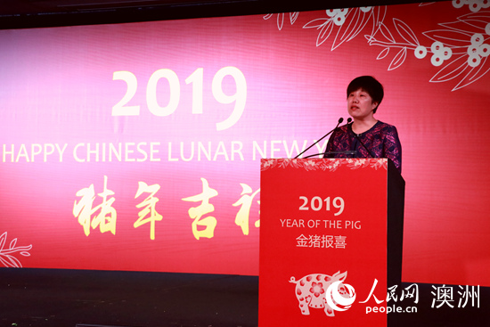 Ms. Lanjing He, Consul-General of the People's Republic of China to Adelaide, sent her New Year greetings and addressed the reception.