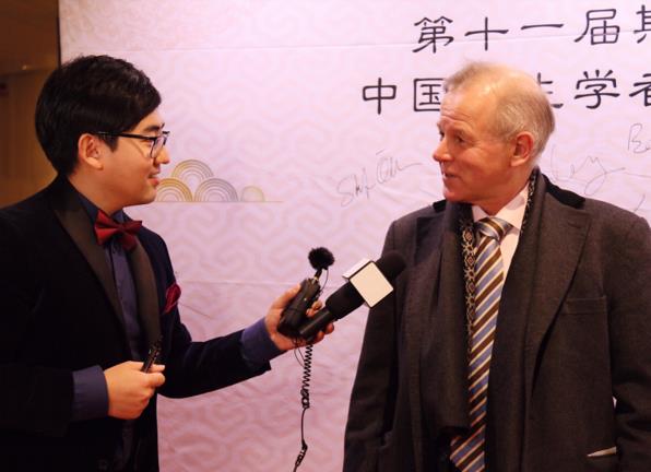 Ole Petter Ottersen, President of the Karolinska Institute, offered his Spring Festival greetings to the Chinese during an interview before the Gala. (Photo: Huang Yundi)