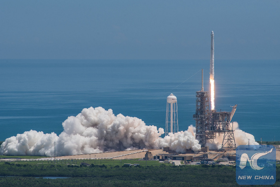 The photo released by SpaceX on Aug. 14, 2017 shows Falcon 9 rocket being launching at NASA's Kennedy Space Center in Florida, the United States. (Photo/Xinhua)