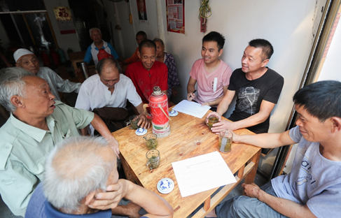 Officials from the discipline inspection commission and supervision commission in Huaying, southwest China’s Sichuan province, are soliciting anti-corruption information at a local tea house in Mingyue town, September 4, 2018. (Photo by Qiu Haiying, People’s Daily Online)