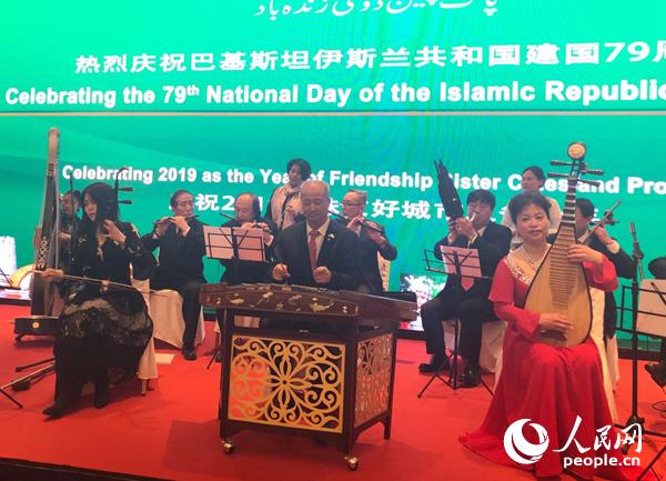 Artists perform Chinese folk music at the Pakistan Day Reception in Beijing, on March 22. (People’s Daily Online/Du Mingming)