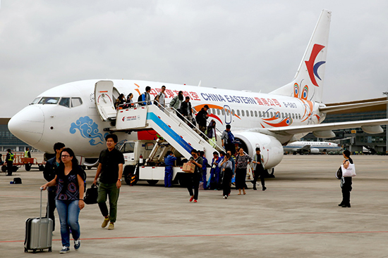 Passengers get off a Boeing aircraft operated by China Eastern Airlines at the international airport in Kunming, Yunnan province. Passengers get off a Boeing aircraft operated by China Eastern Airlines at the international airport in Kunming, Yunnan province.