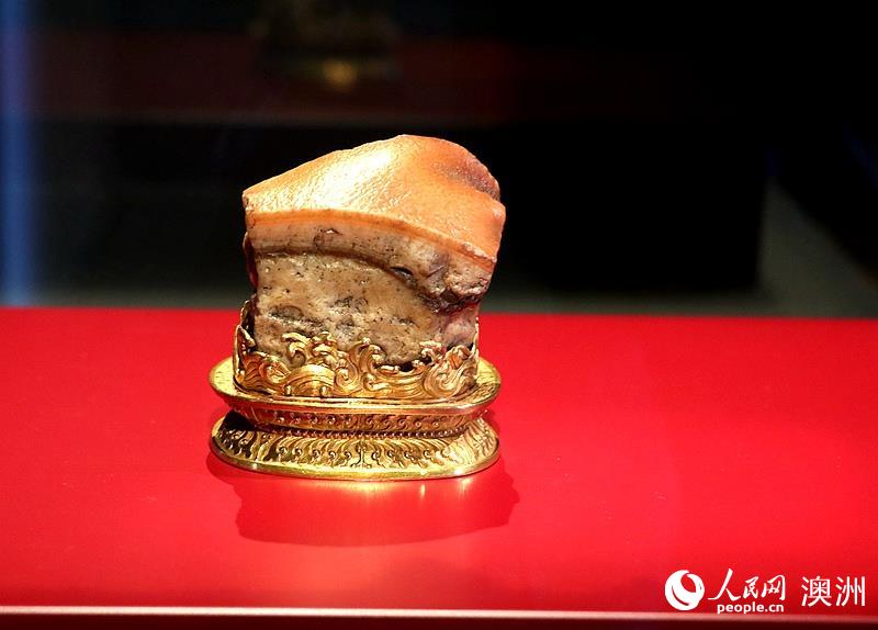 Qing Dynasty Meat-shaped stone, one of the most famous and popular treasures on this exhibition (Photo by Nuo Shen)