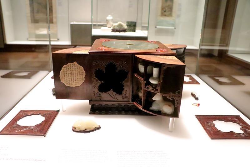Emperor Qianlong's square curiosity box with multiple treasures (Photo by Nuo Shen)