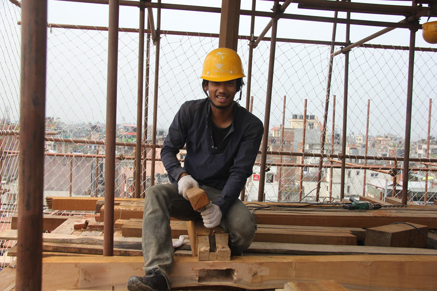 A Nepalese worker at the restoration site. (People's Daily/Yuan Jirong)