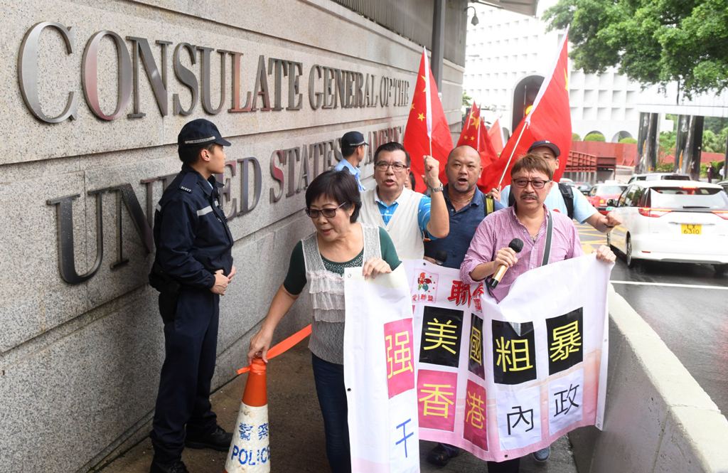 "We are building Hong Kong, while the mobs are destroying it, and there are ghosts behind the mobs," Tsao Tat-ming, who initiated the demonstration, said as he pointed at the United States as the "black hand" behind the recent escalation of violent acts in Hong Kong.