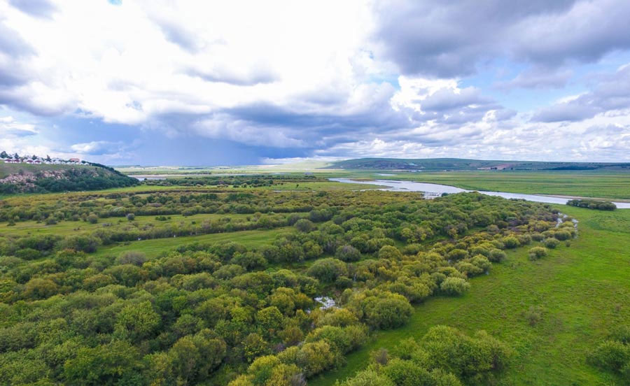 An aerial photo of Hulunbuir Prairie in North China's Inner Mongolia autonomous region, Aug 26, 2019. (Photo/Xinhua)