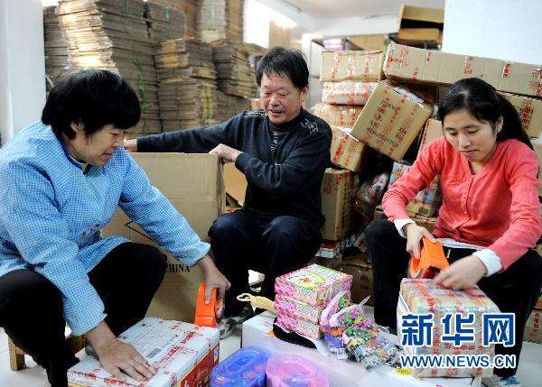 Villagers pack items they sold online in Qingyan, Yiwu. (Photo/Xinhua)