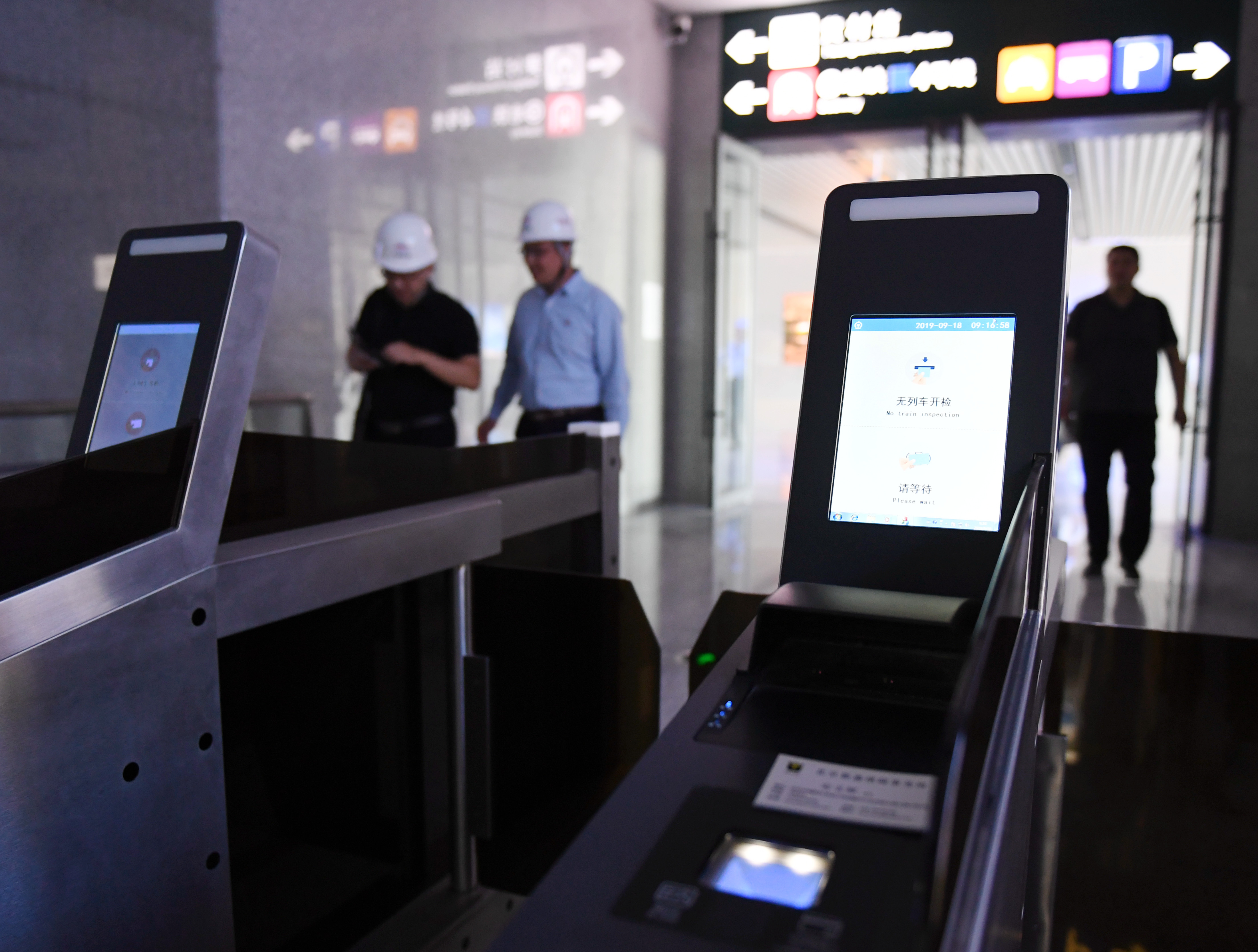 Exit machines at the Daxing station on the intercity railway linking Beijing with Xiongan New Area in Beijing, capital of China, Sept. 18, 2019. (Xinhua/Zhang Chenlin)