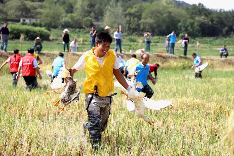 Farmers in Shangcheng County, Henan Province celebrate the harvest festival. (Photo: Yang Xuwei/Publicity Office of Shangcheng County, Henan Province)