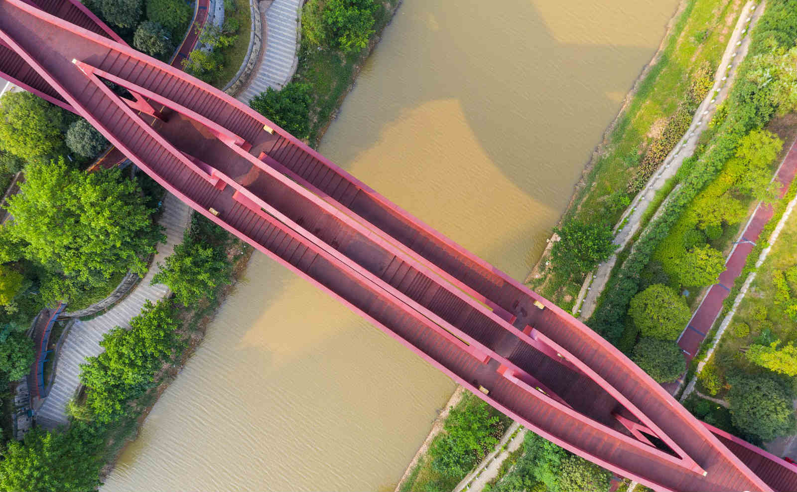 Aerial photos capture a footbridge in the shape of a traditional Chinese knot on Meixi Lake in #Changsha, capital of central China's Hunan Province. (Photo via CCTV)