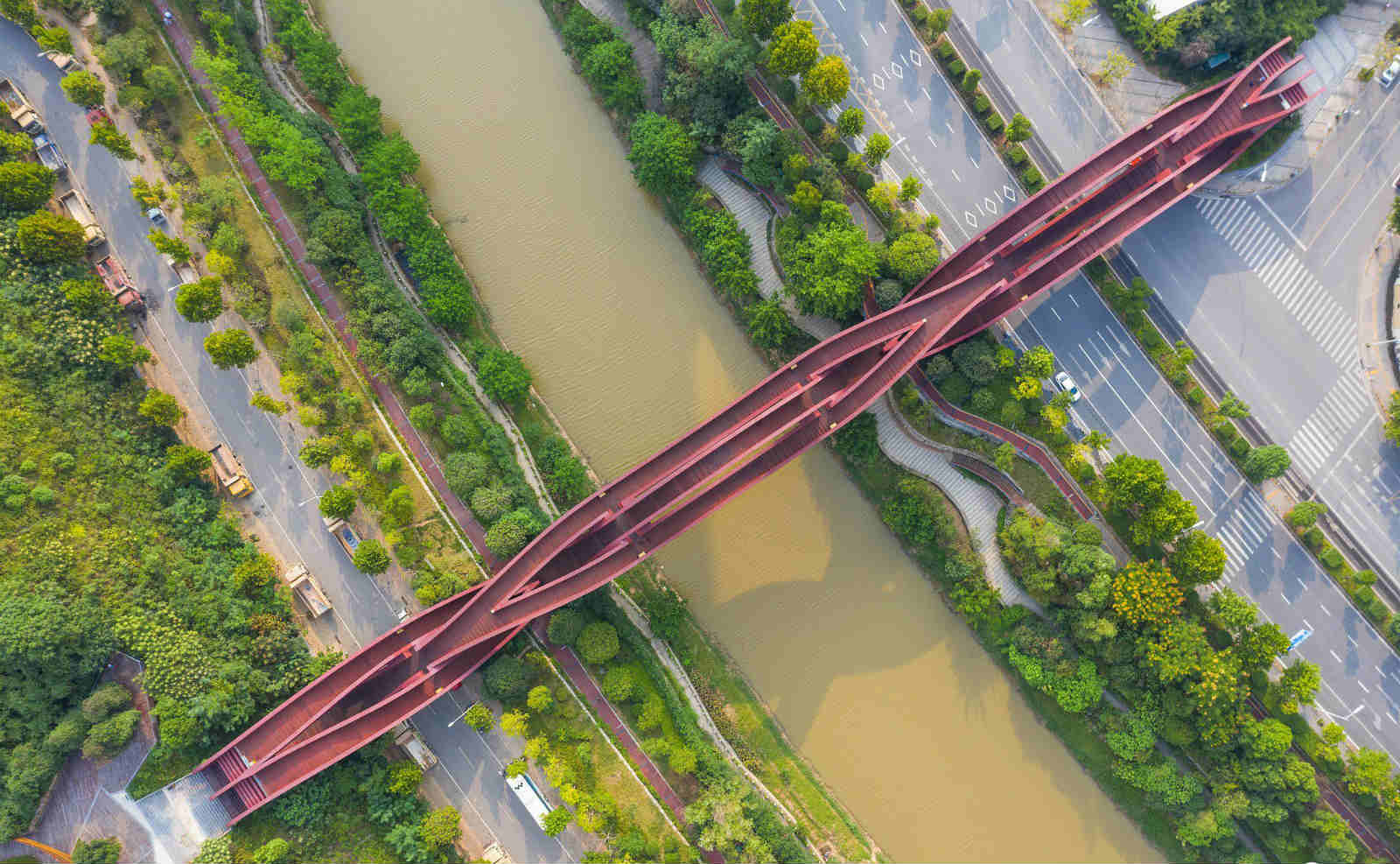 Aerial photos capture a footbridge in the shape of a traditional Chinese knot on Meixi Lake in #Changsha, capital of central China's Hunan Province. (Photo via CCTV)