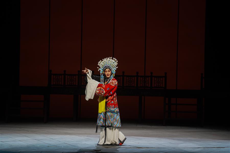 A performer acts in an original modern Kunqu opera show depicting the early life of Peking opera master Mei Lanfang in Nanjing, capital of east China's Jiangsu Province, Oct. 9, 2019. (Xinhua/Ji Chunpeng)