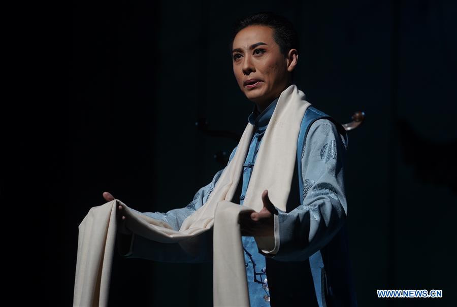 A performer acts in an original modern Kunqu opera show depicting the early life of Peking opera master Mei Lanfang in Nanjing, capital of east China's Jiangsu Province, Oct. 9, 2019. (Xinhua/Ji Chunpeng)