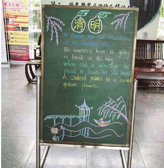 In April, Guo wrote a translation of Xu Yuanchong's ancient poem "Qingming Festival" on a blackboard in the dormitory building, causing many students to stop and read.
